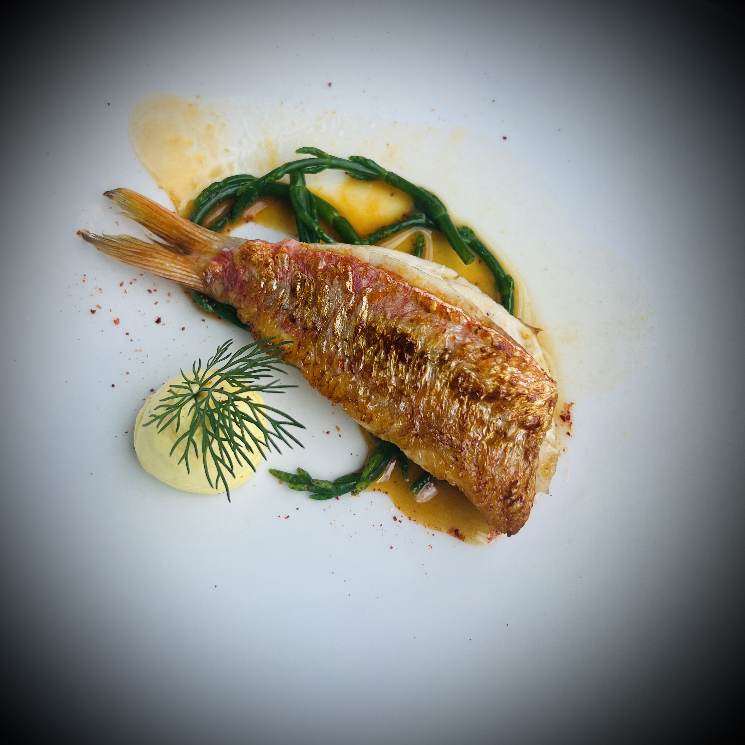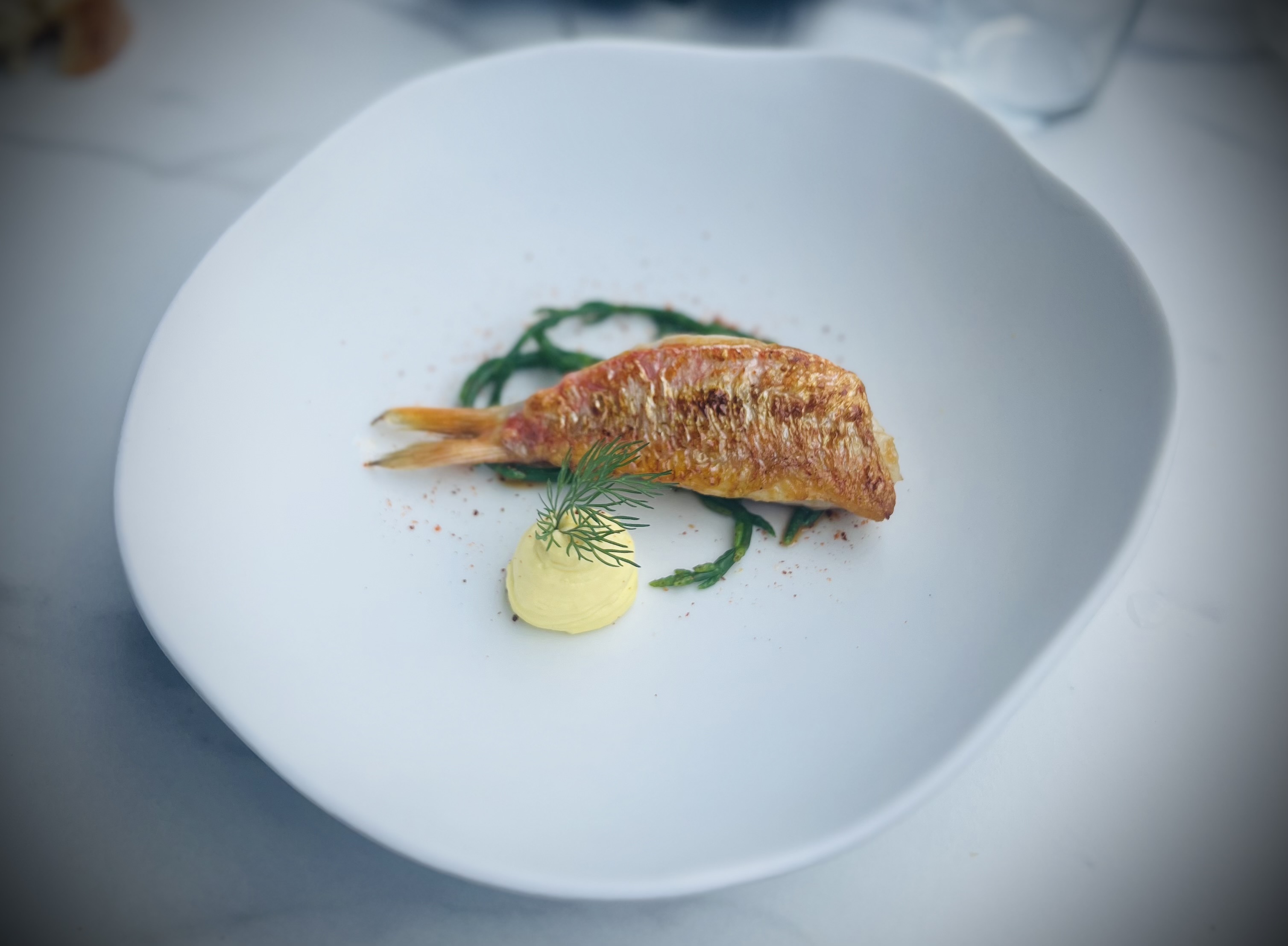 Le filet de rouget barbé, avec ses salicornes et son jus corsé, nous plonge au cœur de l'océan, chaque bouchée évoquant une marée haute.