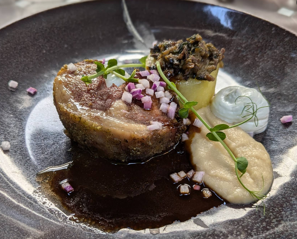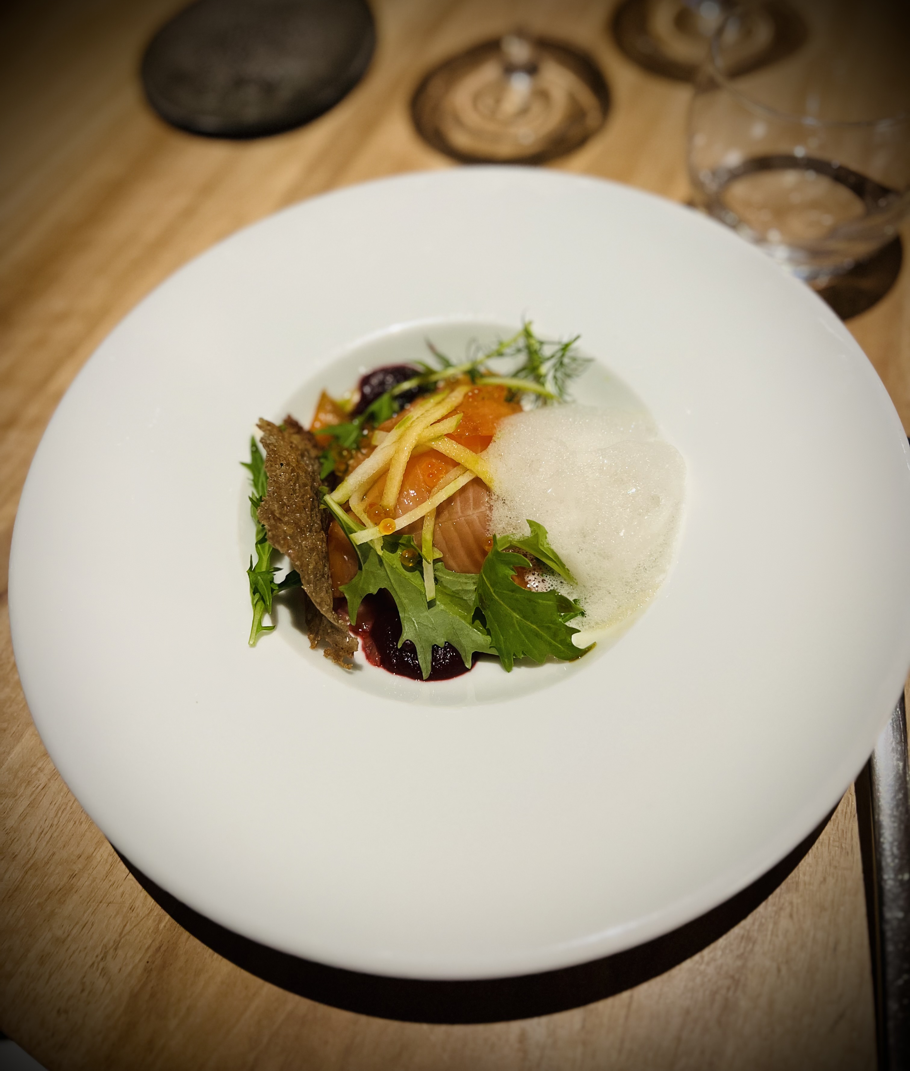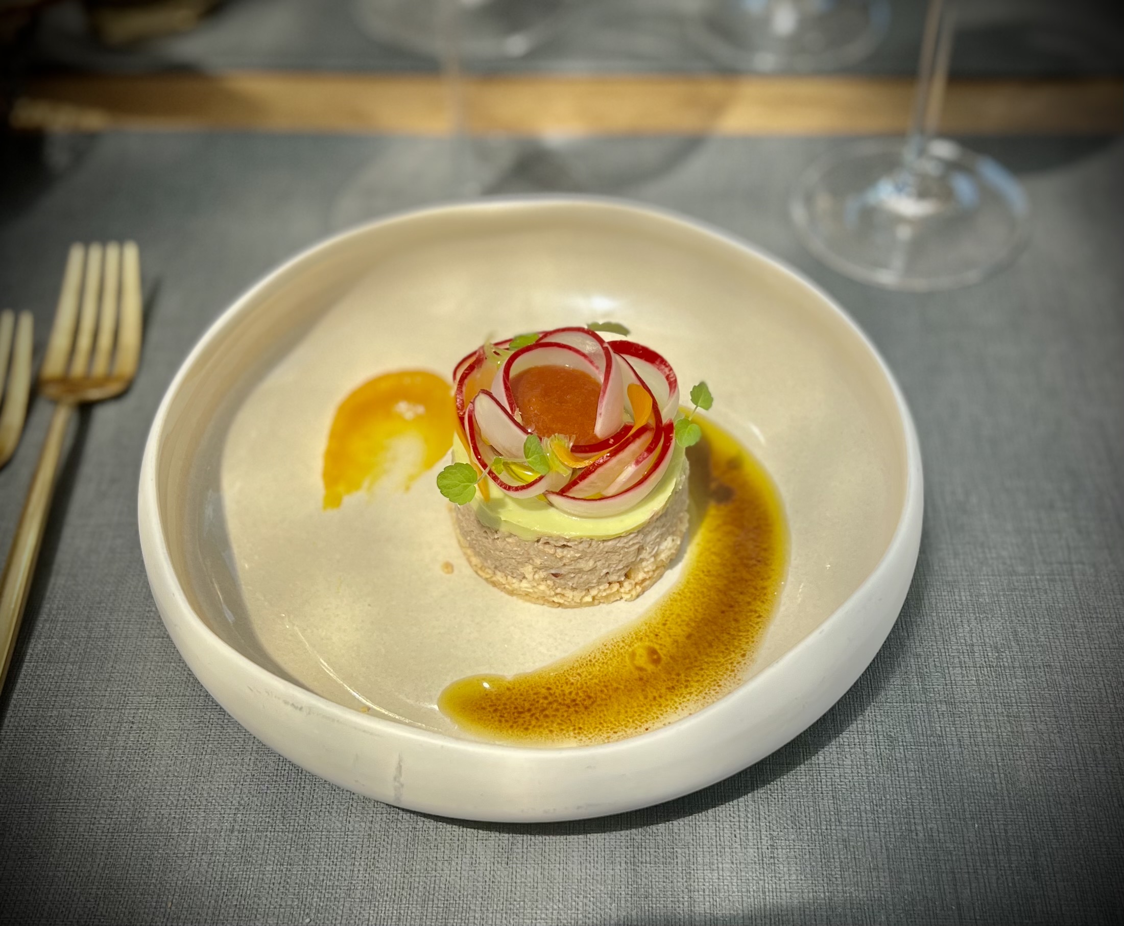 L'entrée du jour a continué sur cette lancée exquise. Les toasts de différents poissons fumés, d'une finesse irréprochable, étaient magnifiquement rehaussés par une crème aux herbes qui, non seulement évoquait des souvenirs d'enfance, mais ajoutait une douceur et une complexité à l'ensemble.