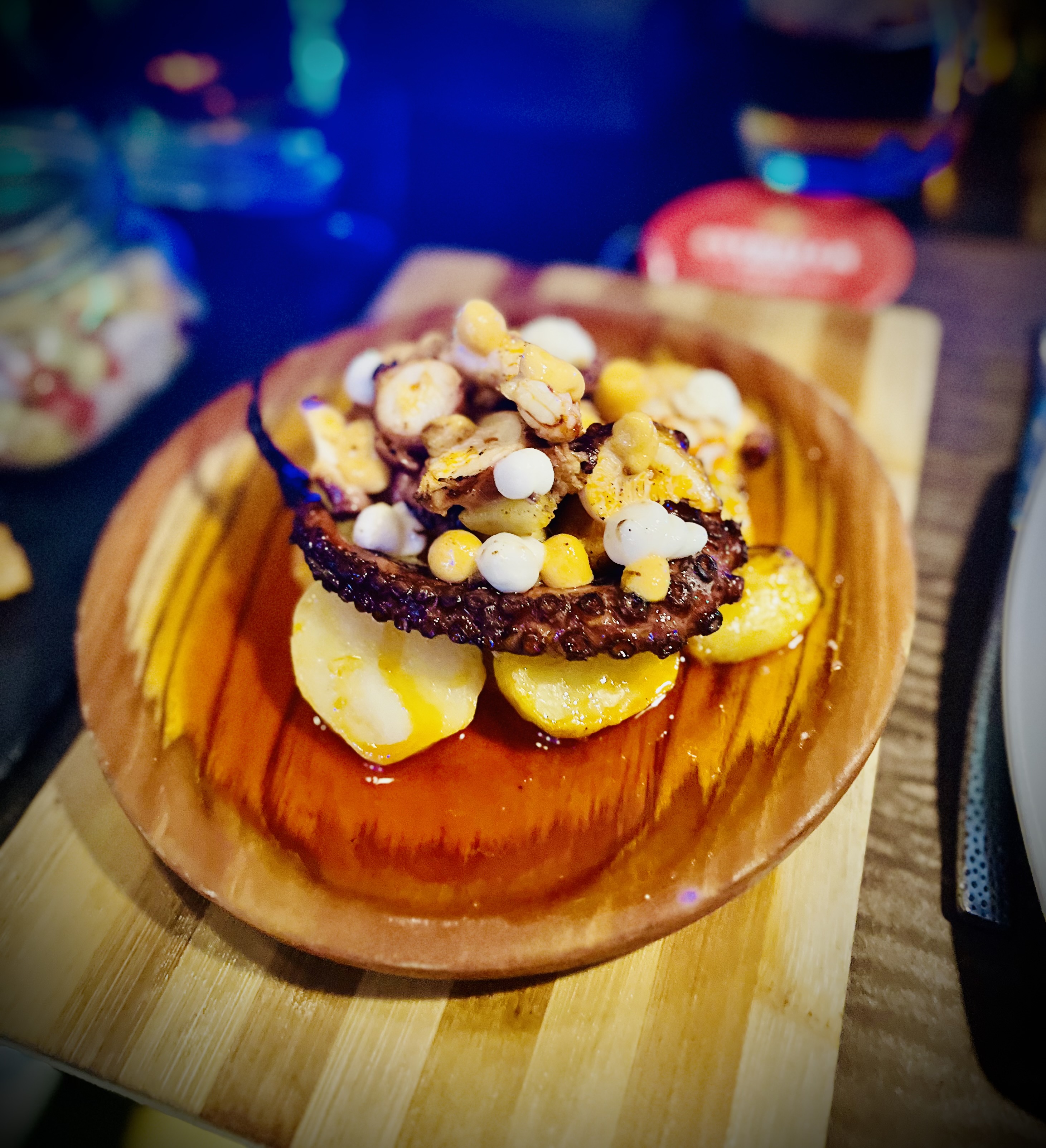 Dès le début, les calamars frits maison, agrémentés de petits poulpes, se distinguent par leur saveur maritime distincte, leur texture croquante à l'extérieur et leur tendreté à l'intérieur. Un début prometteur pour un repas exceptionnel.